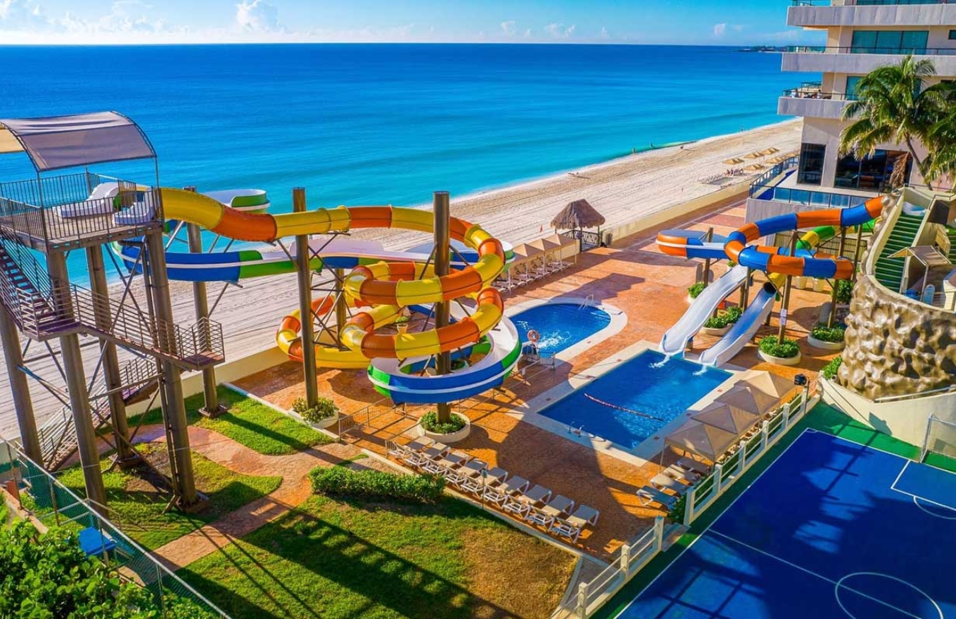 Para los pequeños tiene un parque acuático con barco pirata y nueve toboganes, club de niños y de bebés y actividades exclusivas para adolescentes como tirolesa. Las opciones gastronómicas del hotel incluyen seis restaurantes a la carta y uno tipo bufet, además de varios bares distribuidos por toda la propiedad. Por otro lado, las 617 habitaciones y suites de la propiedad tienen balcón con vista al mar.